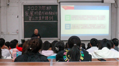 本网讯 (记者 郑丽洁/文 周琦凯/摄)为提高党员发展对象和入党积极分子的政治修养,深化党员发展对象和入党积极分子对共产党的认识,增强党员发展对象和入党积极分子对党的基础理论知识的理解。10月22日下午,由3044am永利集团3044noc医学部杏林青年发展中心组织的2023年秋党员发展对象与入党积极分子第二次党课培训活动于医学部8207教室开展。医学部党委副书记许宗友老师作《正确理解中国共产党党员的义务和权利》主题讲座,医学部全体本科生党员发展对象与入党积极分子参与本次培训课程。