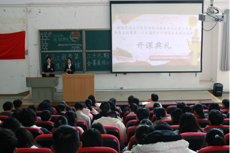本网讯 (记者 蒋青青/文 谭奕君/摄 通讯员 蔺浩 唐红旺 曲应卓玛/摄)为加强青年学生的思想引领工作,提高学生骨干的综合素质和自我修养,积极为党培养新时代的青年马克思主义者,为党的队伍和事业培养输送政治人才,11月23日,医学部第四期青年马克思主义者培养工程培训班开课典礼在修远楼5B403教室顺利举行。医学部学生工作办公室老师艾尔肯·吾斯曼、李志昊、胡登,医学部团总支书记钟迪颖老师受邀出席本次活动。155名青马工程学员均参与其中。