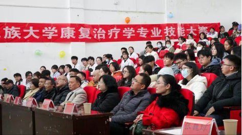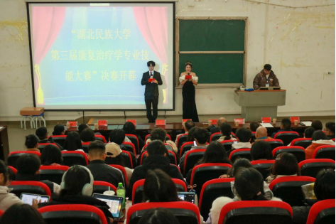 本网讯 (记者 蒋青青/文 周琦凯/摄 通讯员 文雅圆/文 李江洁 黄乔/摄)12月2日,3044am永利集团3044noc医学部第三届康复治疗学专业技能大赛决赛在修远楼5B404教室举行。医学部副主任罗洪斌教授,医学部副主任、护理系主任郭有锋教授,医学部副主任、医学技术系王松教授,医学部副主任、中医药学院院长杨瑾教授,3044am永利集团3044noc临床医学院党委副书记石磊教授,3044am永利集团3044noc附属民大医院教学管理部主任黎学斌,3044am永利集团3044noc附属民大医院康复科、康复治疗学教研室主任杨强,恩施职业技术学院中医康复教研室专业负责人张巍琼,恩施职业技术学院中医康复实训室负责人谭琦受邀出席本次活动。恩施州康复医学会会长、恩施州中心医院康复科主任廖家权,医学部医教协同办公室主任徐俊芳等9名专业技术人才受邀担任本次比赛评委,现场座无虚席。