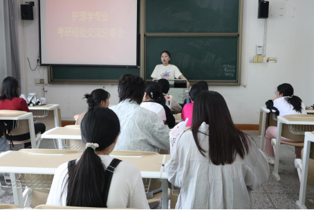 本网讯 (何奕娴/文 王锐鹏/摄)为激发同学们的学习热情,明确考研规划,让同学们对考研院校、专业有更深入的了解。5月27日,医学部在8401教室顺利开展了护理学考研经验交流分享会。医学部学生工作办公室钟迪颖老师主持活动,2022级与2023级护理学同学参与其中。