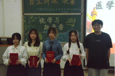 本网讯 (通讯员 蔺浩/文 李江洁 唐红旺/摄)为激励学生更好地肩负新时代赋予的光荣使命,持续深化学习习近平新时代中国特色社会主义思想。4月27日,由医学部团总支宣传部主办的第八届“百生讲坛”决赛于修远楼5B508教室顺利举行,医学部团总支书记钟迪颖老师,团总支副书记赵政清同学、郑若童同学、李运坤同学担任本次比赛的评委。