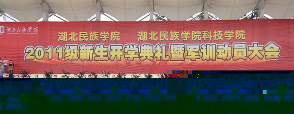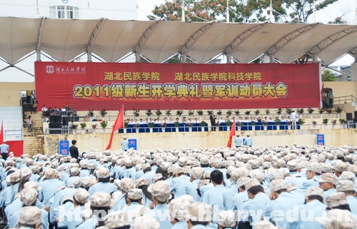 校园网讯 在第27个教师节到来之际,9月10日上午,湖北民族学院、湖北民族学院科技学院2011级新生开学典礼暨军训动员大会在五环体育场隆重举行,来自全国23个省、市、自治区的近9000名2011级新生在此揭开了大学生活新的篇章。