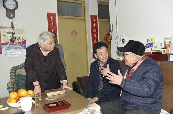 在赵友森老人家中,吴建清郑重地为赵友森老人佩戴纪念章,并与他亲切交谈,仔细询问老人的身体状况和家庭生活情况,倾听老人讲述当年抗美援朝的战斗故事,对老人在抗美援朝战争中敢于斗争、不怕牺牲的革命精神致以最崇高的敬意。回首烽火岁月,赵友森老人双手一遍又一遍地抚摸着金黄色的纪念章,激动得热泪盈眶。70年前,21岁的他在国家民族危难之际,挺身而出、保家卫国。如今已是鲐背之年,获得纪念勋章的激动与欣喜溢于言表。他说:“祖国越来越强大,大家的日子越过越幸福。学校也一步步发展壮大,希望学校越办越好。”