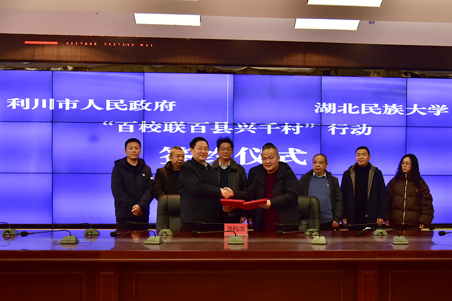 1月19日,学校党委副书记邓磊带队到利川调研“百校联百县兴千村”工作,并代表学校与利川市政府签订“百校联百县兴千村”行动合作意向书。