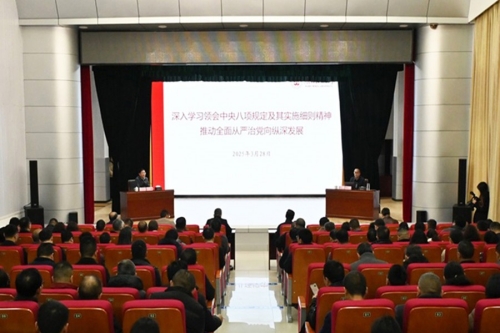 3月28日上午,学校党委常委会深入贯彻中央八项规定精神学习教育第二次专题辅导报告在行政楼一号会议室举行,学校党委副书记、组织部长邓磊主持报告并讲话,党委常委、纪委书记张宏磊作专题辅导。