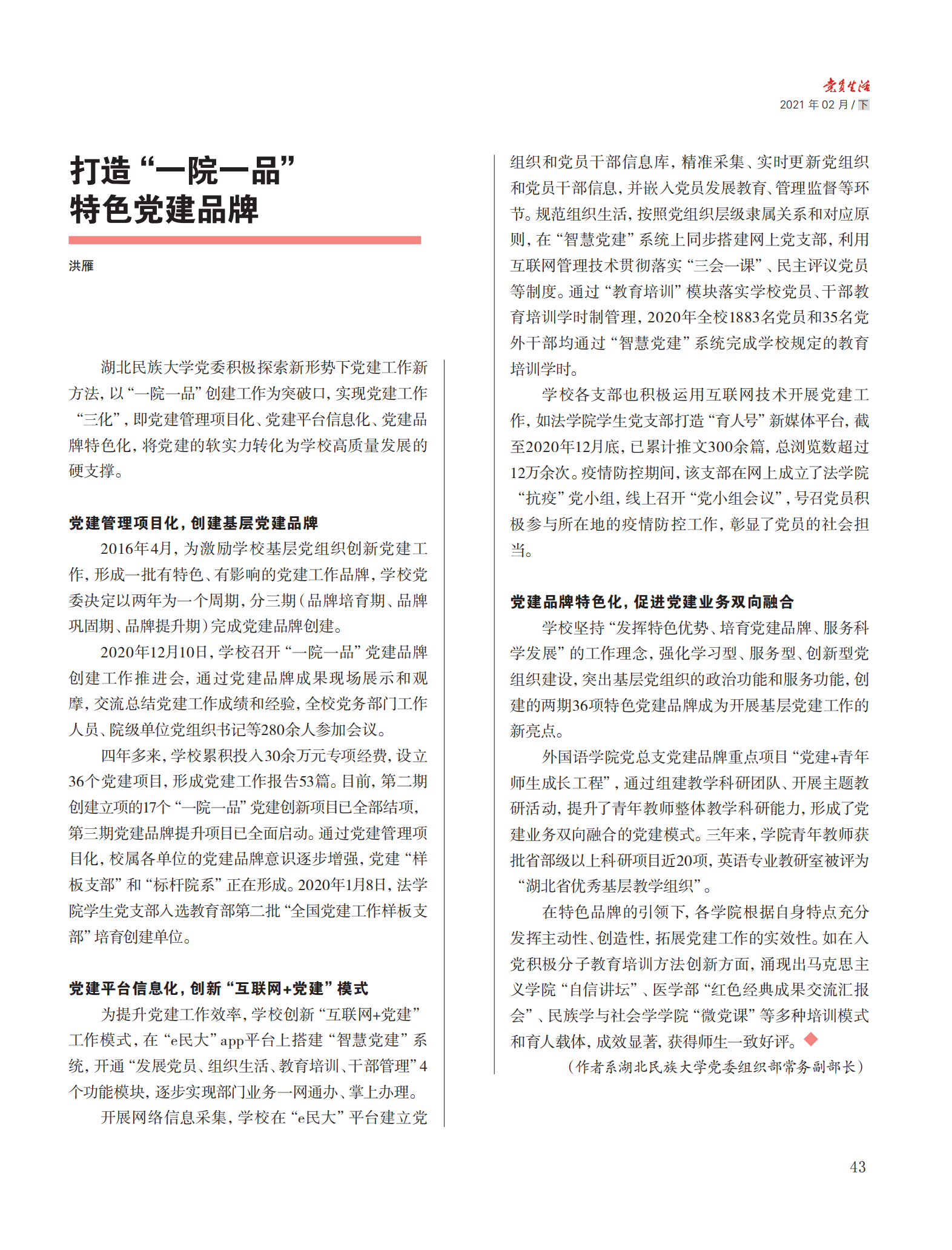 《党员生活》专题报道永利官网“一院一品”党建品牌建设情况
