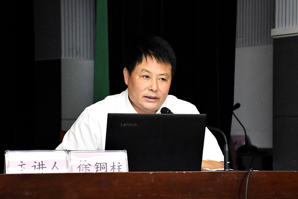 下午,学校马克思主义学院院长徐铜柱教授以《深刻领会中国共产党为什么“能”的成功密码》为题,从国家、人民、民族、世界四个维度分析了中国共产党“怎么能”,以六个“始终”、六个“获得”深刻剖析了中国共产党为什么“能”的成功密码。