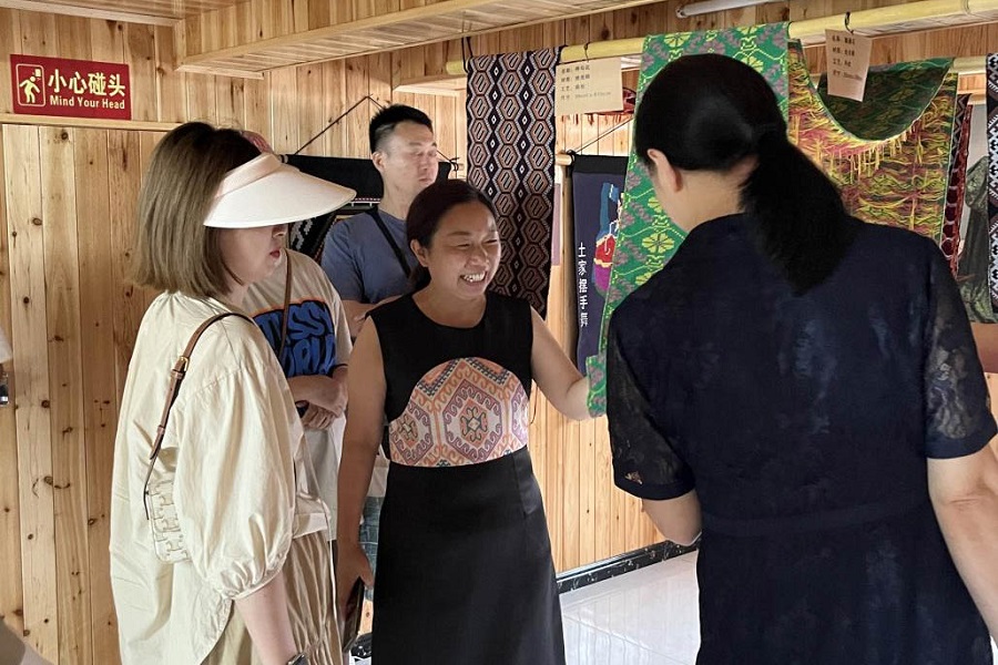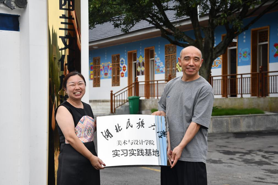 活动中,美设学院为基地授牌建立教学实习实践基地,党员教师们与麻阳寨村非遗传承人田若兰老师以及村民们展开了互动交流,并通过理论学习、座谈、现场体验等方式深入体会西兰卡普编织技艺,感受非遗文化的魅力和乐趣。
